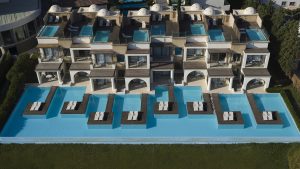 Nestled along a private beach in the breathtaking Ixia Bay on the island of Rhodes, The Ixian Grand & All Suites promises an idyllic escape, complete with majestic sunsets, lush
